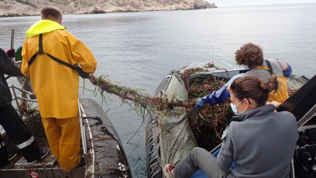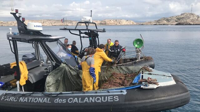 Le 1er octobre 2020, un filet de 300 m de long a été récupéré au Frioul. Ce filet, signalé depuis 2019, était perdu sur l’herbier de posidonie. Le retrait de ce filet a nécessité l’intervention de 3 équipes sur le terrain, tout cela en coordination avec l’OFB :
